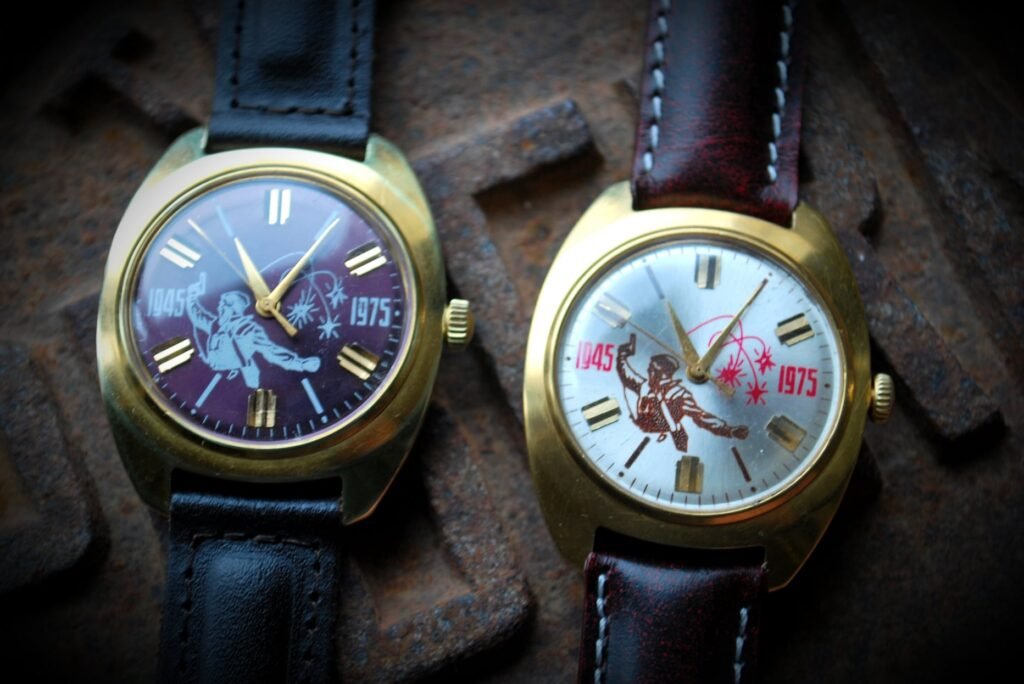 La imagen además aparecerá en la tapa trasera de algún modelo, concretamente en la tapa trasera de estos Komandirskies conmemorativos (abajo)