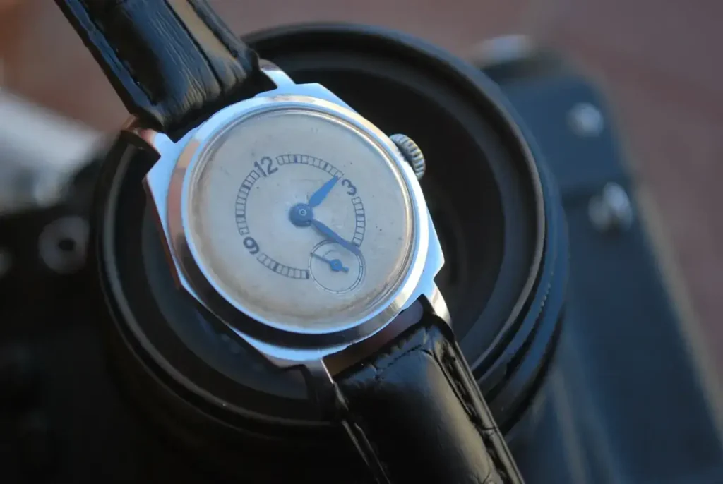 Y el reloj de mi colección que fue usado en ellas, nótese que la esfera es fácilmente legible y que recuerda a la imagen de una diana.