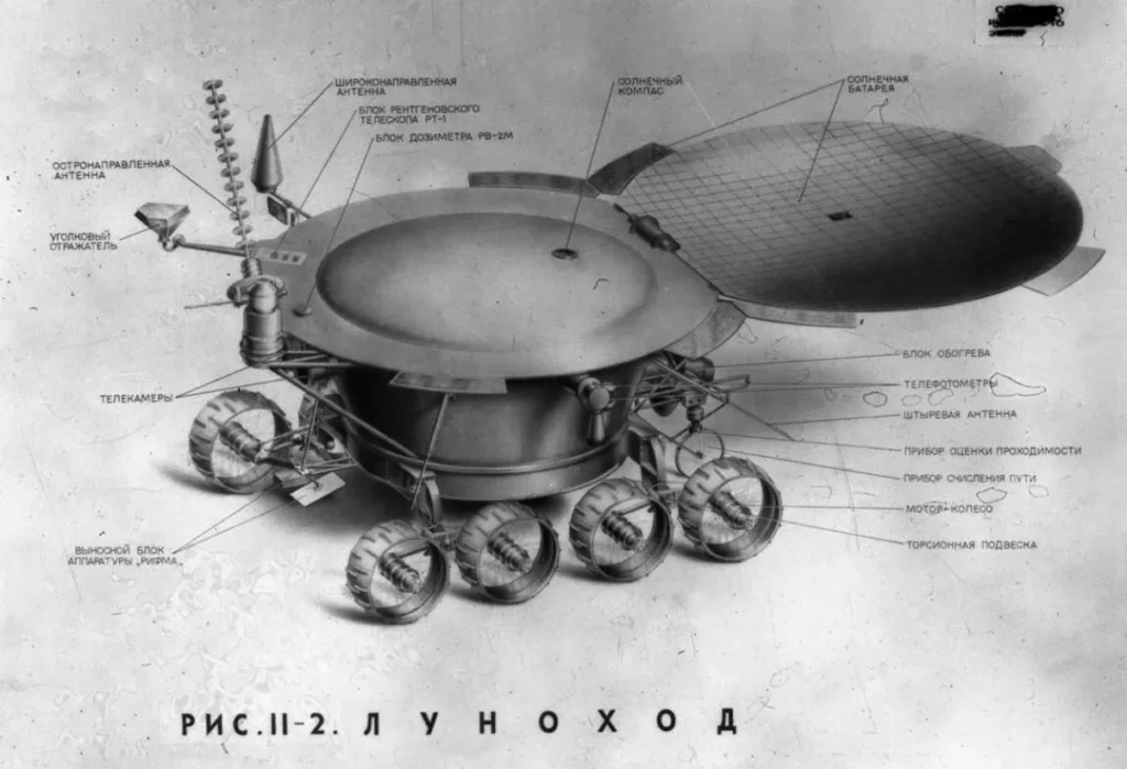 Los relojes de botón fueron usados también en las cámaras de video de los vehículos Lunajod 1970-1973 de las expediciones a la Luna, abajo imagenes de la Luna con el reloj de botón en la parte superior.
