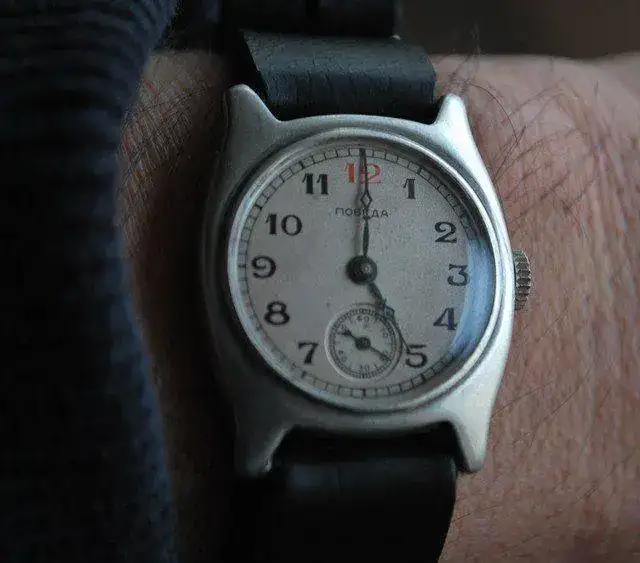 Este reloj no es especialmente raro, es un Pobeda de la primera fábrica de relojes de Moscú, e incluso las manecillas no le corresponden.