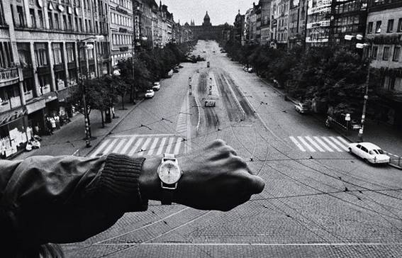 This photograph of an arm with a watch, in a deserted Prague square was taken by the photographer Josef Koudelka on August 21, 1968.