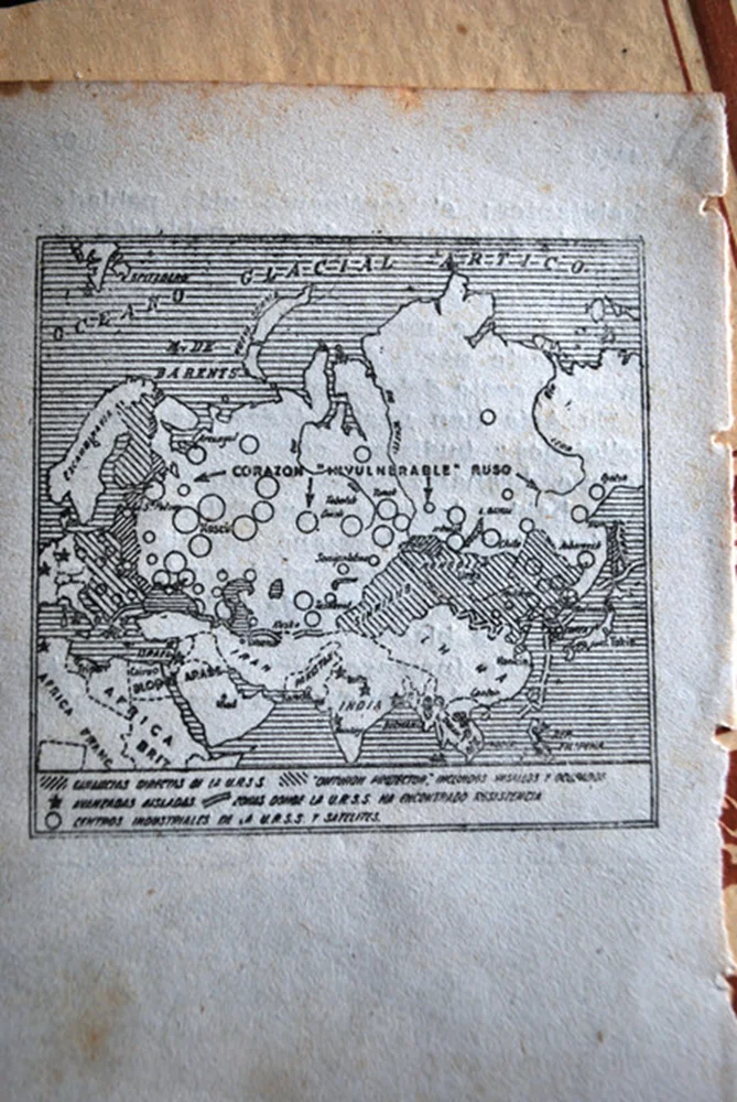 It is written in Spanish language, and looks like a spy map, with industrial centers, direct profit lands of the URSS areas where the URSS had gained resistance, etc… I thought it was very curious.